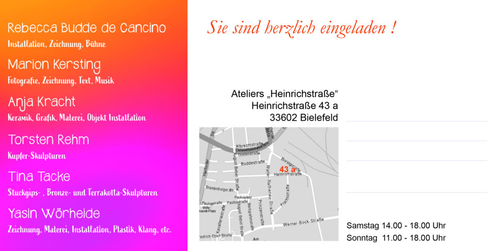 Ich freue mich auf euch in meinem Atelier in der Heinrichstr. 43a, 33602 Bielefeld